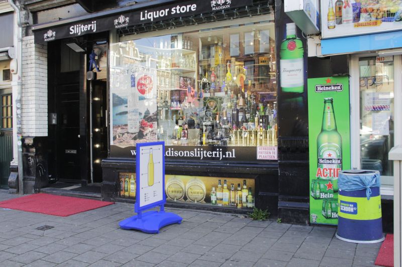 Slijterij Madison is a liquor shop with an extensive selection of alcoholic beverages and wines. Many thanks to the owner Sabri for hosting us. The presentation will be visible until 29 September. Slijterij Madison is open every day from 14:00 to 22:00 and on Sunday from 12:00 to 22:00.